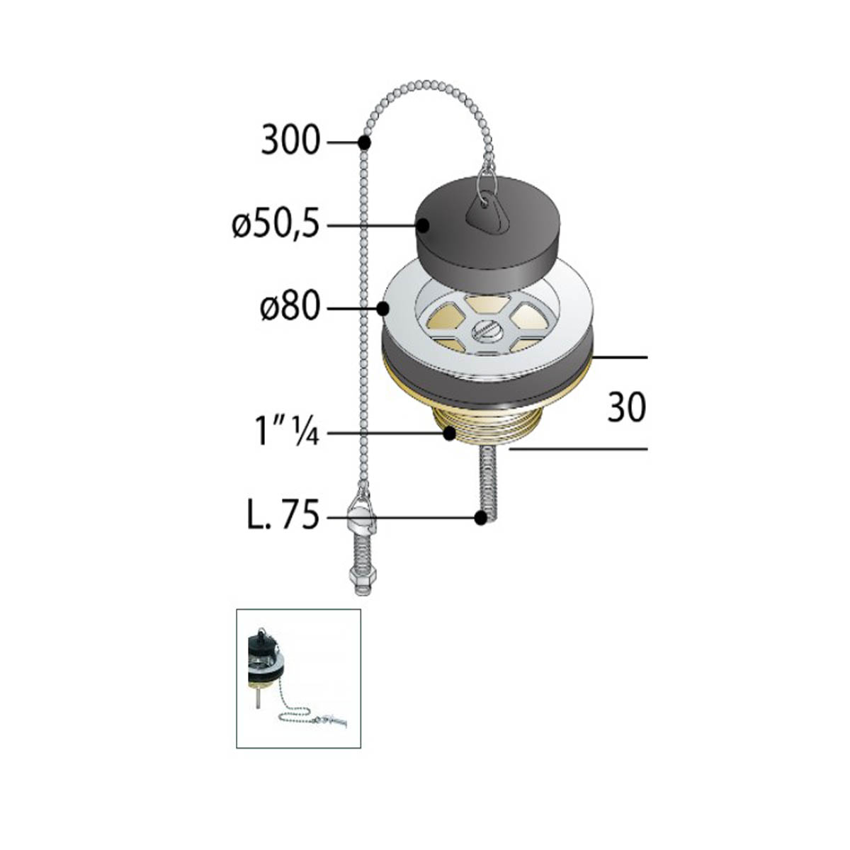 Βαλβίδα νιπτήρος 1 1/4, ορειχάλκινη.