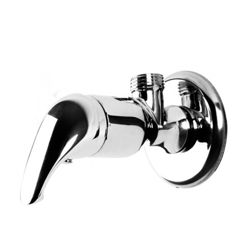 Διακόπτης γωνιακός 1/2 x 1/2 χρωμέ, με μηχανισμό Φ25 και ροζέτα.