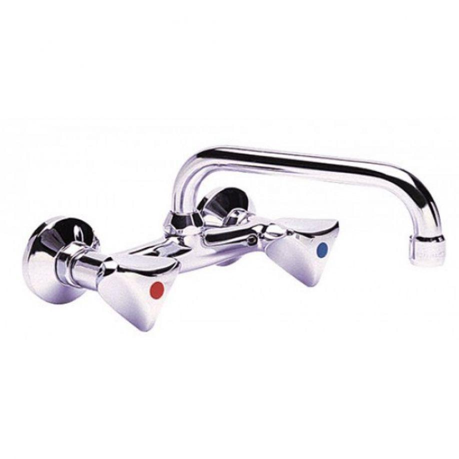 Μπαταρία νεροχύτου τοίχου Linea,χρωμέ επίχρωσης,ορειχάλκινη,διπλής ροής,άνω η κάτω,με ρουξούνι φ18/20cm και μηχανισμό ½ ΄΄πολυστροφικό.