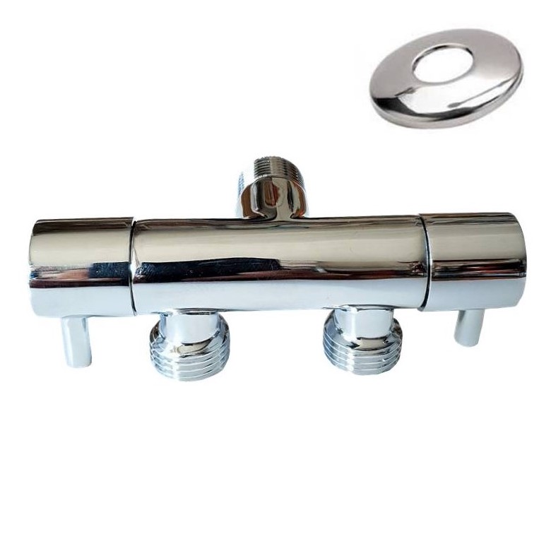 Διακόπτης μπιντέ διπλός, 1/2” x 1/2” χρωμέ επίχρωσης, ορειχάλκινο, με ροζέτα.