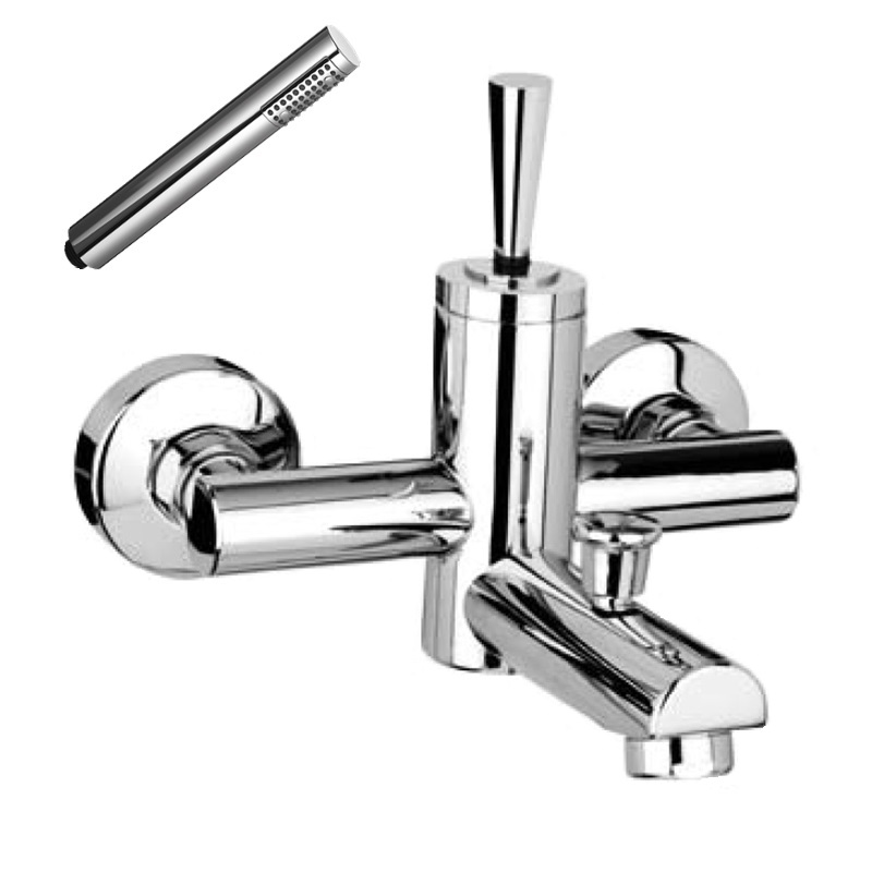 Μπαταρία λουτρού θερμομεικτική, χρωμέ επίχρωσης, ορειχάλκινη, με χειροτηλέφωνο χρωμέ και μηχανισμό Φ35.
