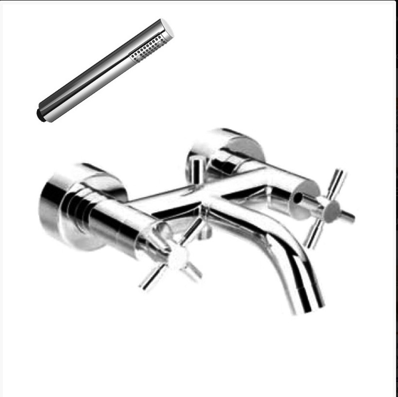Μπαταρία λουτρού Spazio, χρωμέ επίχρωσης, ορειχάλκινη, διπλής ροής με χειροτηλέφωνο χρωμέ, σπιράλ 1,5m και μηχανισμό 1/2” κεραμικό.