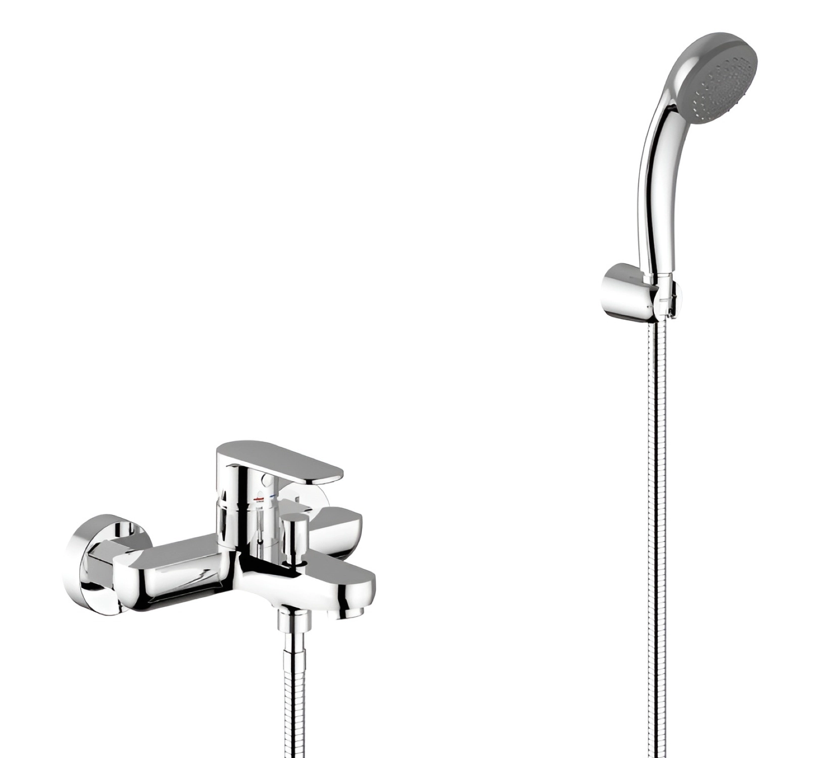 Μπαταρία λουτρού Rodi, θερμομεικτική, χρωμέ επίχρωσης, ορειχάλκινη, χειροτηλέφωνο χρωμέ, σπιράλ 1,5m και μηχανισμό Φ35.